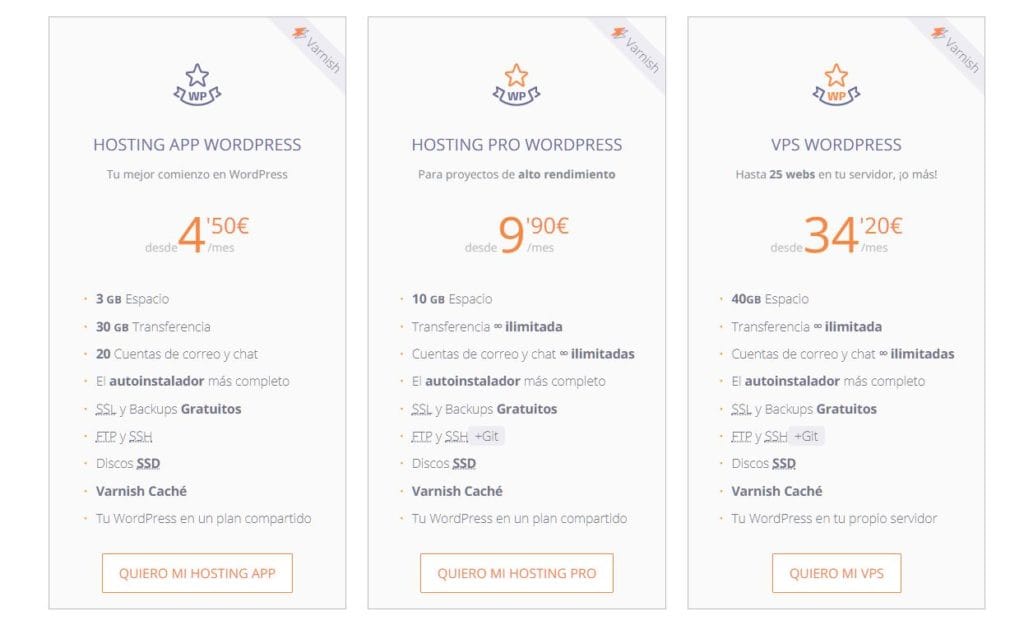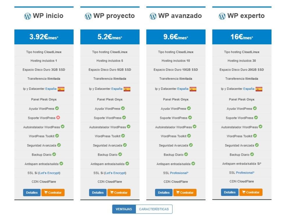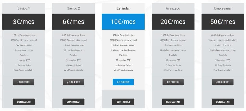 (Precios a diciembre del 2018) Han separados sus planes de servicio desde alguien que inicia hasta un «experto» y cubre un gran abanico de necesidades. Puedes encontrarlo desde 3.92€/mes