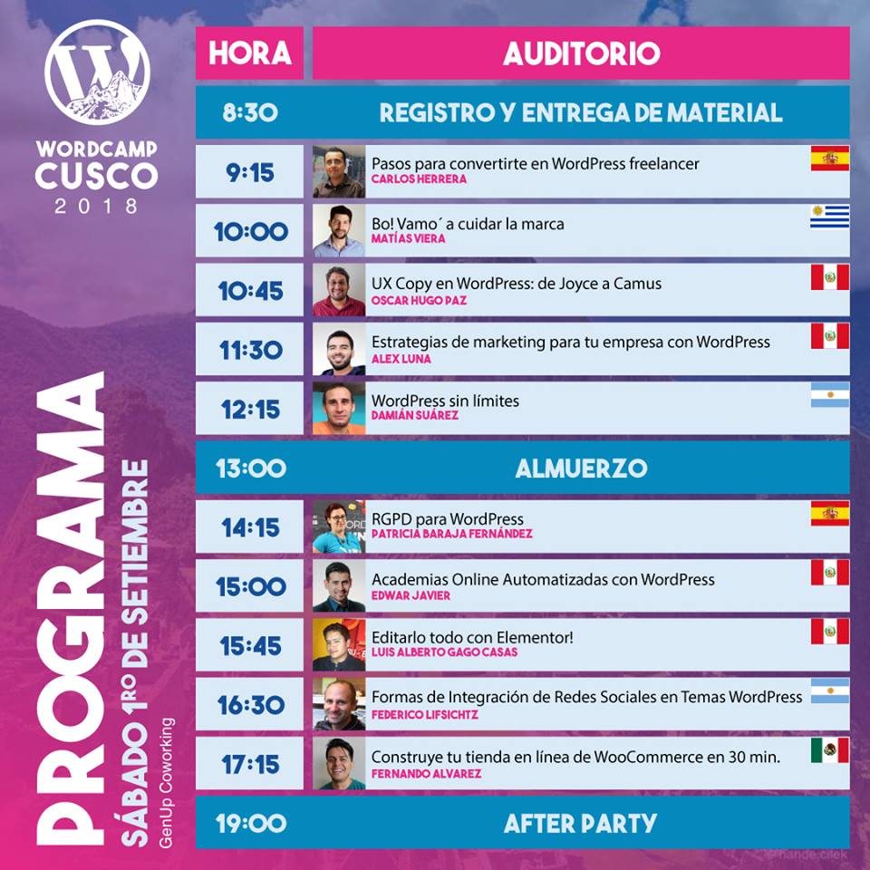La coincidencia ha llegado a que durante mi estancia en Perú se celebraría una WordCamp ¡y además en Cusco!. Tiempo que no visitaba Cusco. Era una oportunidad de que mi hija conozca su pasado cultural y para mi de ver como había cambiado la ciudad poder participar y conocer gente WordPresera o WordPressers fuera de Lima.
